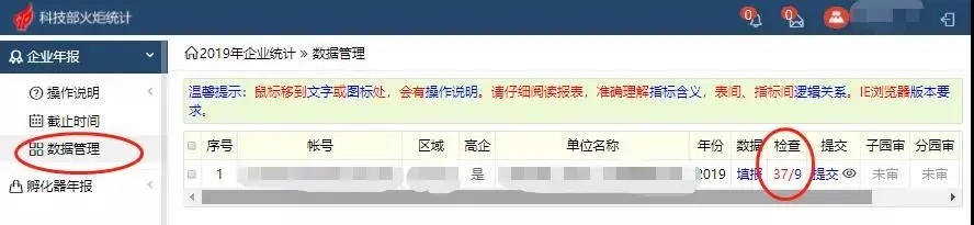 填寫完成后,點(diǎn)擊『數(shù)據(jù)管理』,對(duì)錯(cuò)誤項(xiàng)進(jìn)行檢查,錯(cuò)誤項(xiàng)必須修改;